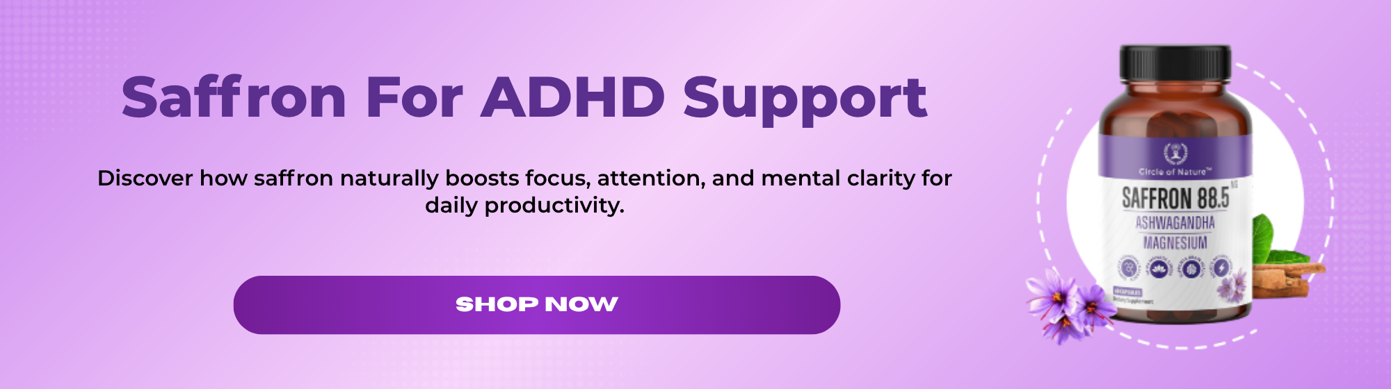 Mood Support: Saffron is well-known for helping with depression and anxiety, which often occur alongside ADHD. The mood-stabilizing effects create a better foundation for attention and emotional control.