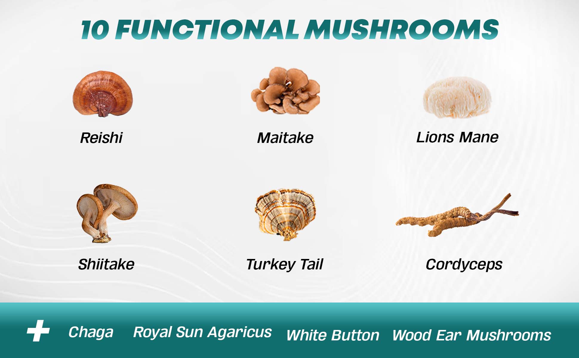 Experience the Benefits of Lion’s Mane, Cordyceps, Reishi, Shiitake, and More!