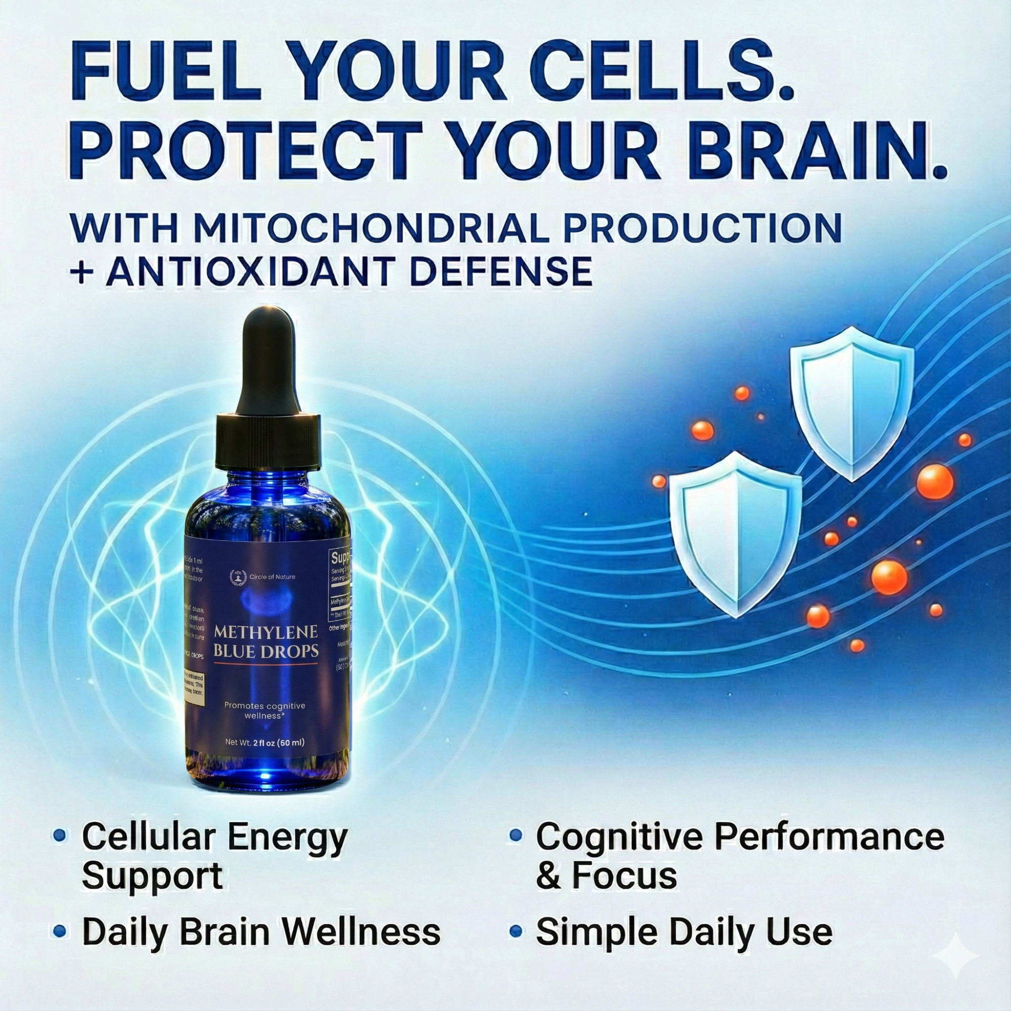 Support your natural cellular energy, focus, and mental clarity with easy-to-use Methylene Blue Drops. Each serving delivers 10 mg to help promote healthy mitochondrial function and cognitive wellness—ideal for busy adults, students, and biohackers.